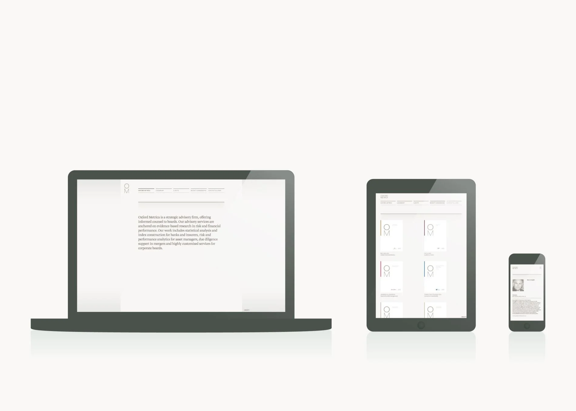 Oxford Metrica's logo design, brand identity, and editorial design system were crafted in collaboration with studio FM milano in 2014. This reimagined identity builds upon a previous iteration, with a concept deeply intertwined with the core operations of the strategic advisory firm. It centres around statistical analysis, index construction for banks and insurers, as well as risk and performance analytics for asset managers.
