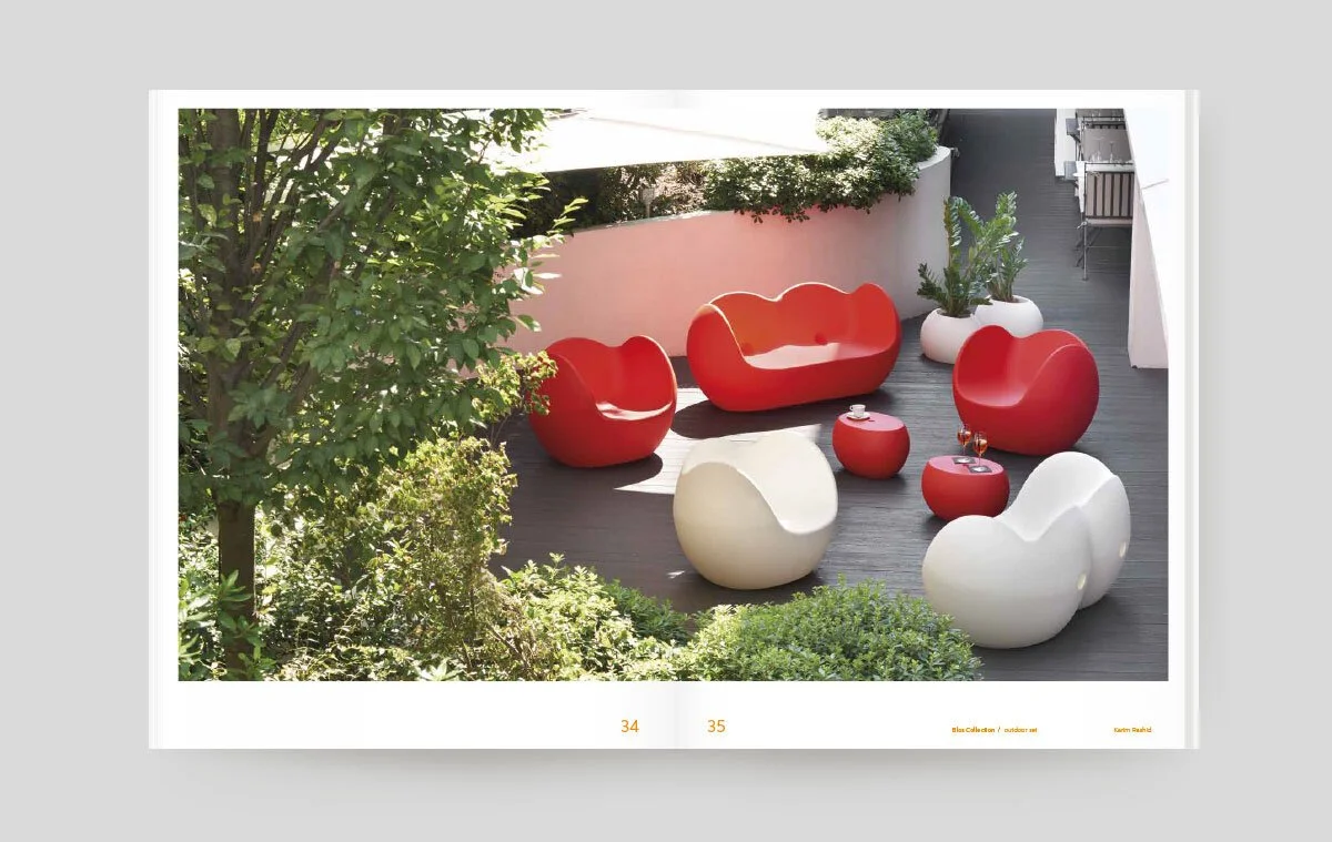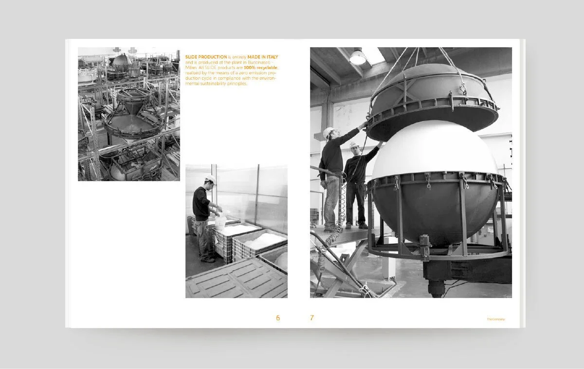 Slide is a design company that uses plastic resin to create lightining piece of furniture to use indoor and outdoor, they needed a redesign of the logo and a new project for their catalog.